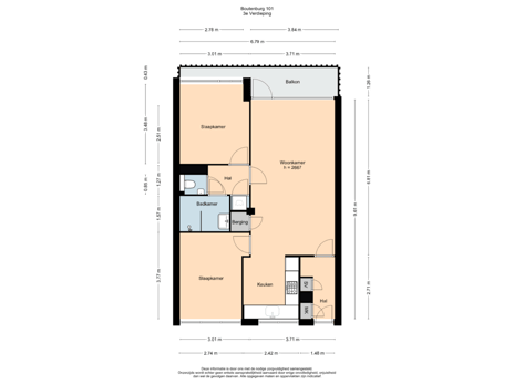 Deze woning is gemeten volgens de Meetinstructie. De Meetinstructie is gebaseerd op de NEN2580. De Meetinstructie is bedoeld om een meer eenduidige manier van meten toe te passen voor het geven van een indicatie van de gebruiksoppervlakte. De Meetinstructie sluit verschillen in meetuitkomsten niet volledig uit, door bijvoorbeeld interpretatieverschillen, afrondingen of beperkingen bij het uitvoeren van de meting. Hoewel wij de woning met veel zorg hebben opgemeten kan het zijn dat er verschillen zijn in de afmetingen. Noch verkoper noch de makelaar accepteert enige aansprakelijkheid voor deze verschillen. De maatvoeringen worden door ons gezien als zuiver indicatief. Indien de exacte maatvoering voor u van belang is, raden wij u aan de maten zelf te (laten) meten.