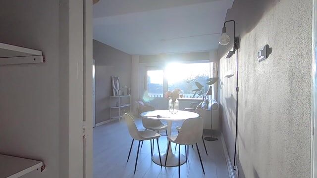 The living area is situated at the rear of the apartment and offers ample space for a comfortable lounge sofa and a cozy dining area. Thanks to the large windows, this is a beautifully bright room. From the living room, you access the southwest-facing balcony, where you can enjoy a wide, green view and sunshine throughout the day.