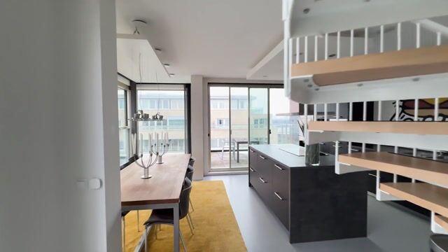 In het penthouse is de liefde voor Keith Haring goed te zien, op muurschilderingen in de hal, keuken en badkamer. Deze kunstvorm, uitgevoerd in prachtige kleuren, vormt een fraai geheel met de rustige kleuren die bij de vloer, wanden en plafonds zijn gebruikt. Hier koop je geen penthouse, maar een uniek stuk kunst waar je iedere dag van kunt genieten …