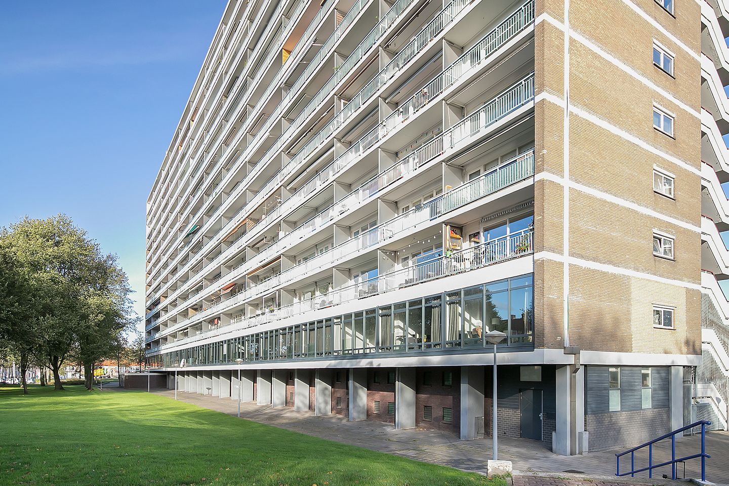 Het complex heeft een exclusieve entree en is royaal opgezet met een luxe designuitstraling. Via een overdekte galerij, ga je naar je eigen woning op de eerste verdieping. De hal beschikt over greeploze inbouwkasten en een separaat toilet.