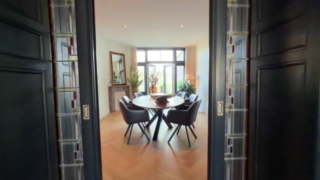 Het appartement biedt een royale woon-/eetkamer ensuite, een moderne open keuken met luxe inbouwapparatuur, vier slaapkamers, een zonnig balkon aan de eetkamer, een speelse erker met fraai uitzicht over de straat en een heerlijk dakterras van circa 33 m² op het zuiden. Originele details zoals glas-in-lood, hardstenen schouwen en de klassieke ensuite-indeling zijn behouden. De afwerking is hoogwaardig met vloerverwarming en goede isolatie. De woning is recent grondig gerenoveerd en verzorgd afgewerkt.