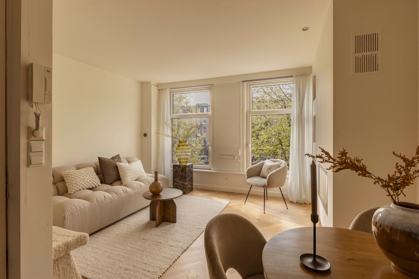 Charming apartment of 46 m², on own ground, featuring a one-bedroom layout with en-suite bathroom, a balcony, a cosy fireplace, and a private storage room on the fourth floor. Located along the waterfront of the Da Costakade in Amsterdam Oud-West, the apartment was renovated in 2018/2019.