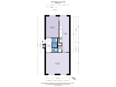 - 37 m² (7,68 meter diep en 4,86 meter breed)