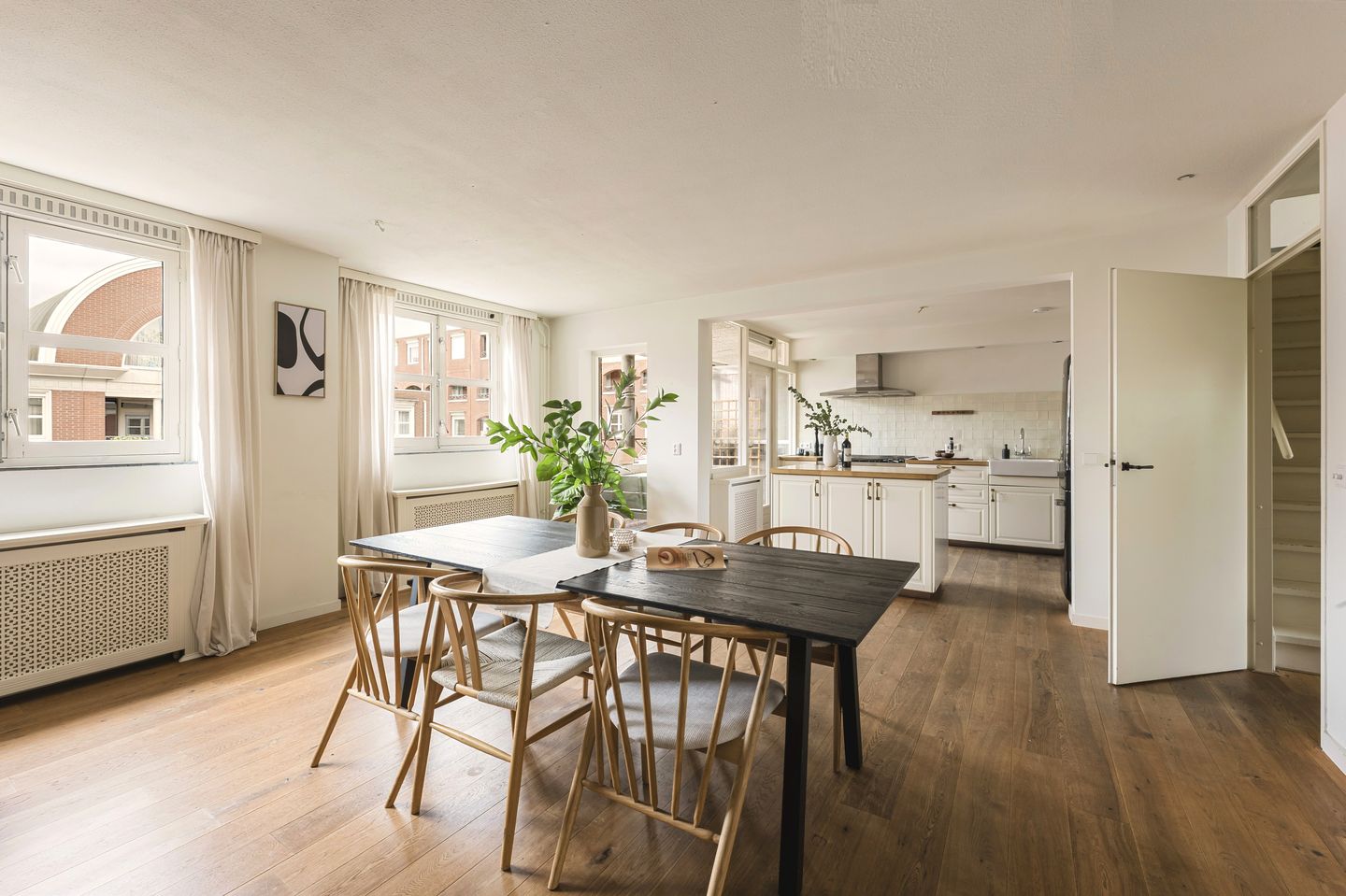 Located in a unique spot in Oud-West, this exceptionally well-designed 5-room apartment of nearly 120 m² features a spacious living area and a small south-facing terrace, spread over the third and fourth floors. Truly a “secret spot” in the heart of Amsterdam. This worry-free apartment sits on the edge of the city center, offers a high level of comfort, and includes access to a large communal garden (200 m²) and a generous storage unit in the basement.