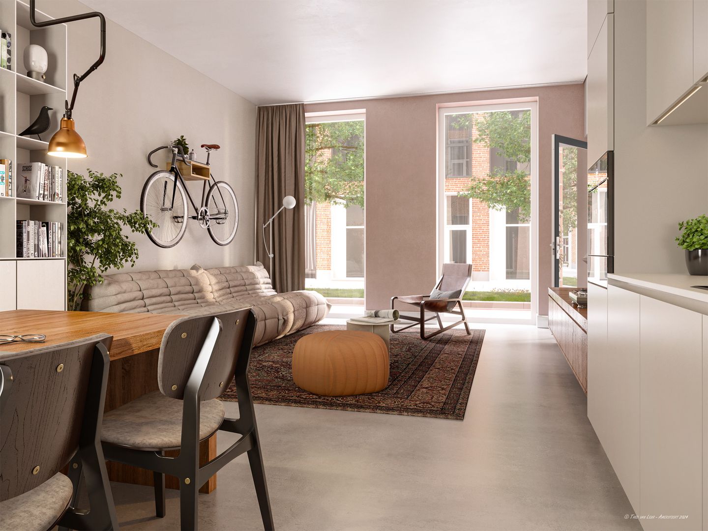 Eigen buitenruimte toegankelijk vanuit woonkamer.