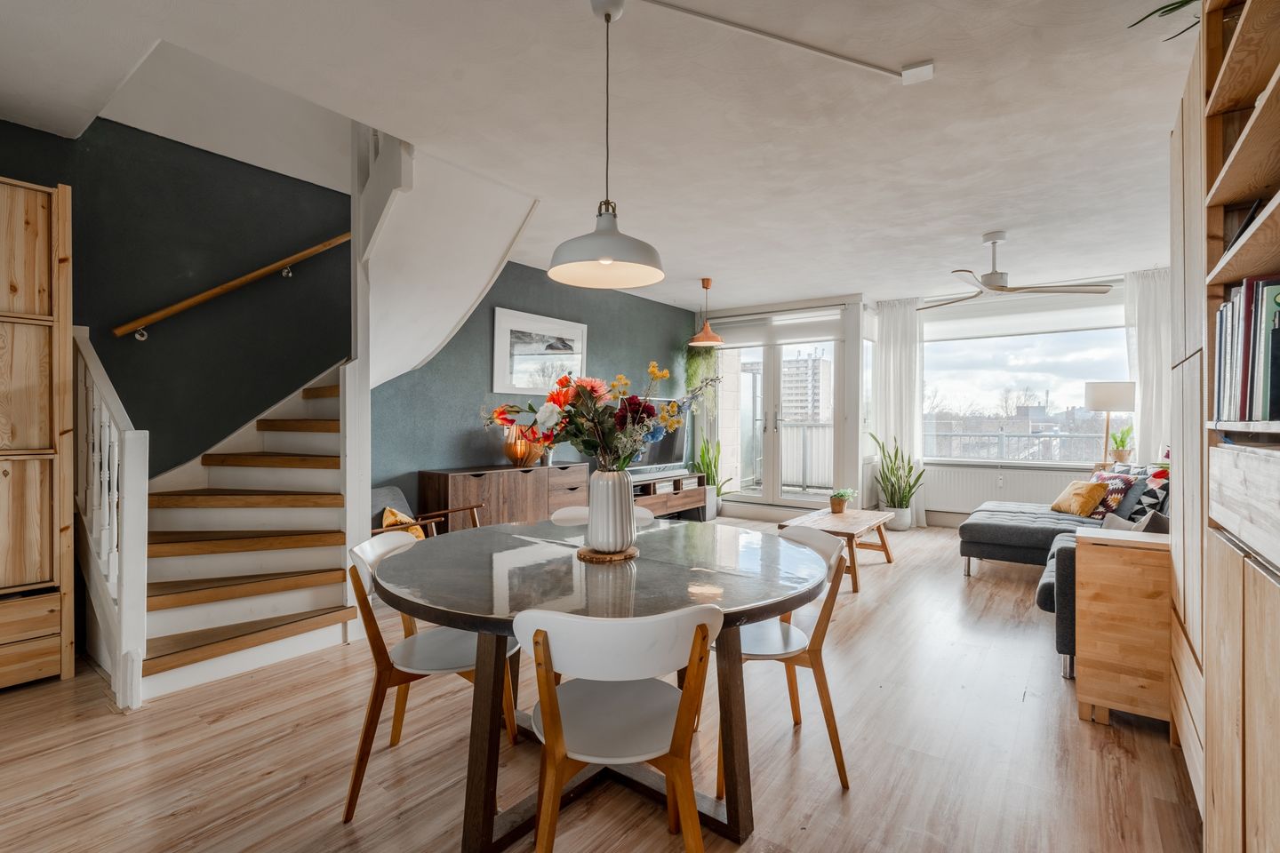The house is located on private land and is on the third and fourth floor in the quiet neighbourhood De Punt in Nieuw-West. The complex was designed by architect J.P. Kloos. Unique are the ‘suspension bridge maisonettes’, hence its municipal monument status. The flat is located in a well-maintained building with a lift.