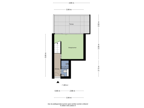 - 12 m² (2,52 meter diep en 4,89 meter breed)