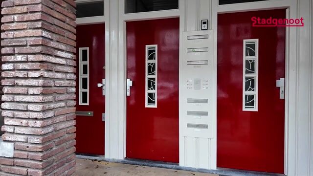 Via de verzorgde gemeenschappelijke entree, herkenbaar aan de fraaie jaren-'50 geveldetails en opvallende rode voordeuren, betreedt u het trappenhuis. De gedeelde hal is netjes afgewerkt en geeft toegang tot het trappenhuis richting de bovengelegen woonverdiepingen.