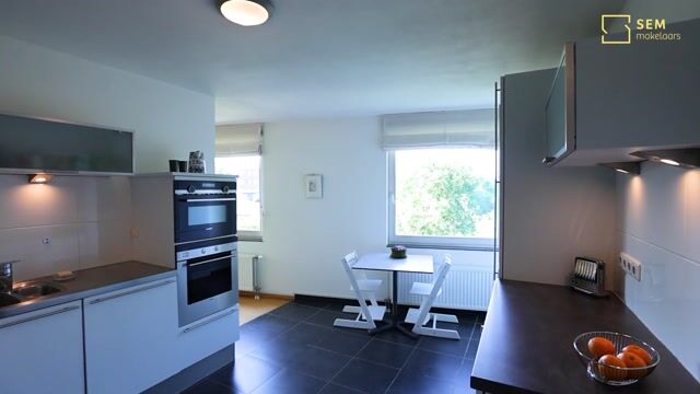 De woonkamer heeft een prachtige lichtinval door de vele ramen en loopt door in de half open keuken. Via de schuifpui betreed je het prachtige balkon van 10m2 om heerlijk te genieten van de groene buurt en de zon en is een verlenging van de woonkamer.