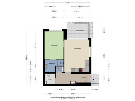 - 10 m² (2,46 meter diep en 4,01 meter breed)