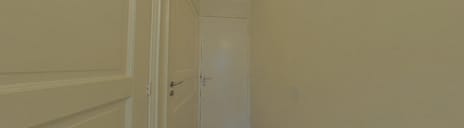 Via the communal stairwell, you reach the entrance of the apartment on the first floor. Upon entering, you step into a spacious hallway that provides access to all rooms of the apartment. The hallway is efficiently laid out, with a separate toilet with washbasin on the right-hand side. Next to the toilet is a built-in storage cupboard housing the modern central heating system (installed in 2022). A connection for a washing machine is also located here, neatly tucked away and out of sight.