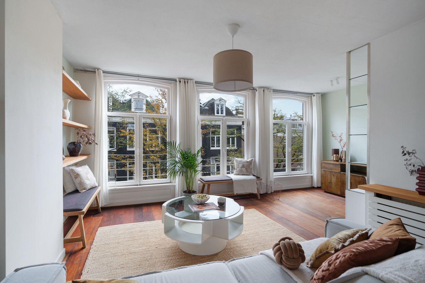 LIVING in de Pijp Licht & Stijlvol appartement op de derde verdieping — Eigen Grond In één van de mooiste en meest geliefde straten van De Pijp bevindt zich dit lichte doorzonappartement op de derde verdieping, met prachtig uitzicht dankzij de grote ramen aan zowel de voor- als achterzijde. Een kleine rondleiding: WELKOM Via de gedeelde entree met fraai hardstenen bordes bereik je de trap naar de derde verdieping. Bij binnenkomst in het appartement stap je in de hal, die toegang biedt tot alle vertrekken. WONEN EN KOKEN De royale woonkamer aan de voorzijde baadt in het licht en grenst direct aan de eetkamer; ideaal voor een grote eettafel en een comfortabele zithoek. De open keuken is greeploos uitgevoerd, voorzien van moderne apparatuur en veel werkruimte—hier is ruimte voor culinaire creativiteit en contact met je gasten. SLAPEN Dankzij de doorzonindeling is het appartement nu zeer licht en open, maar een praktische indeling met twee ruime slaapkamers is eenvoudig te realiseren. Aan de achterzijde geniet je van rust en groen, ideaal voor een goede nachtrust. Let op: Er worden nog twee deuren geplaatst tussen de achterste, kleine kamer en de woonkamer waardoor een tweede slaap/werkkamer ontstaat. ME-TIME De badkamer is functioneel en modern ingericht met een inloopdouche, wastafelmeubel en toilet. GOED OM TE WETEN Het appartement is volledig voorzien van dubbele beglazing en goed geïsoleerde kozijnen, wat bijdraagt aan een gunstig energielabel B. De kleine VvE bestaat uit vier betrokken leden en het beheer en de administratie zijn in eigen hand. Het reservefonds is gezond, het MJOP aanwezig en recent zijn nog onderhoudswerkzaamheden uitgevoerd aan het schilderwerk van de buitenkozijnen. Ook het gebouw staat op eigen grond, er is dus geen erfpacht van toepassing. OMGEVING Gelegen in de autovrije en recent opnieuw ingerichte Frans Halsstraat, te midden van veel groen en nabij het Sarphatipark, de beroemde Albert Cuypmarkt en talloze boetieks, koffietentjes en restaurants. Tram 24 en metro 52 liggen op loopafstand, waardoor Amsterdam-Zuid/WTC en Schiphol snel bereikbaar zijn. Parkeren kan (met vergunning) in de ondergelegen parkeergarage aan de Ruysdaelkade. Al het moois samengevat • Op eigen grond gelegen • Ca. 62 m² woonoppervlak conform meetinstructie NEN2580 • Goed geïsoleerd, energielabel B • HR CV-combiketel uit 2017 • Kleine, betrokken VvE; administratie in eigen beheer. Men heeft recent ingestemd met het aanvragen van een vergunning tot plaatsen balkon achterzijde • Maandelijkse VvE-bijdrage: €125 • Funderingsherstel en grootschalige renovatie in 2002 • Recent heringerichte straat en parkeergarage direct nabij • Niet-bewonersclausule en ouderdomsclausule standaard van toepassing • Oplevering kan snel DISCLAIMER De woning is ingemeten conform NEN2580. Deze meetinstructie is bedoeld om een meer eenduidige manier van meten toe te passen voor het geven van een indicatie van de gebruiksoppervlakte. De meetinstructie sluit verschillen in meetuitkomsten niet volledig uit, door bijvoorbeeld interpretatieverschillen, afrondingen of beperkingen bij het uitvoeren van de meting.