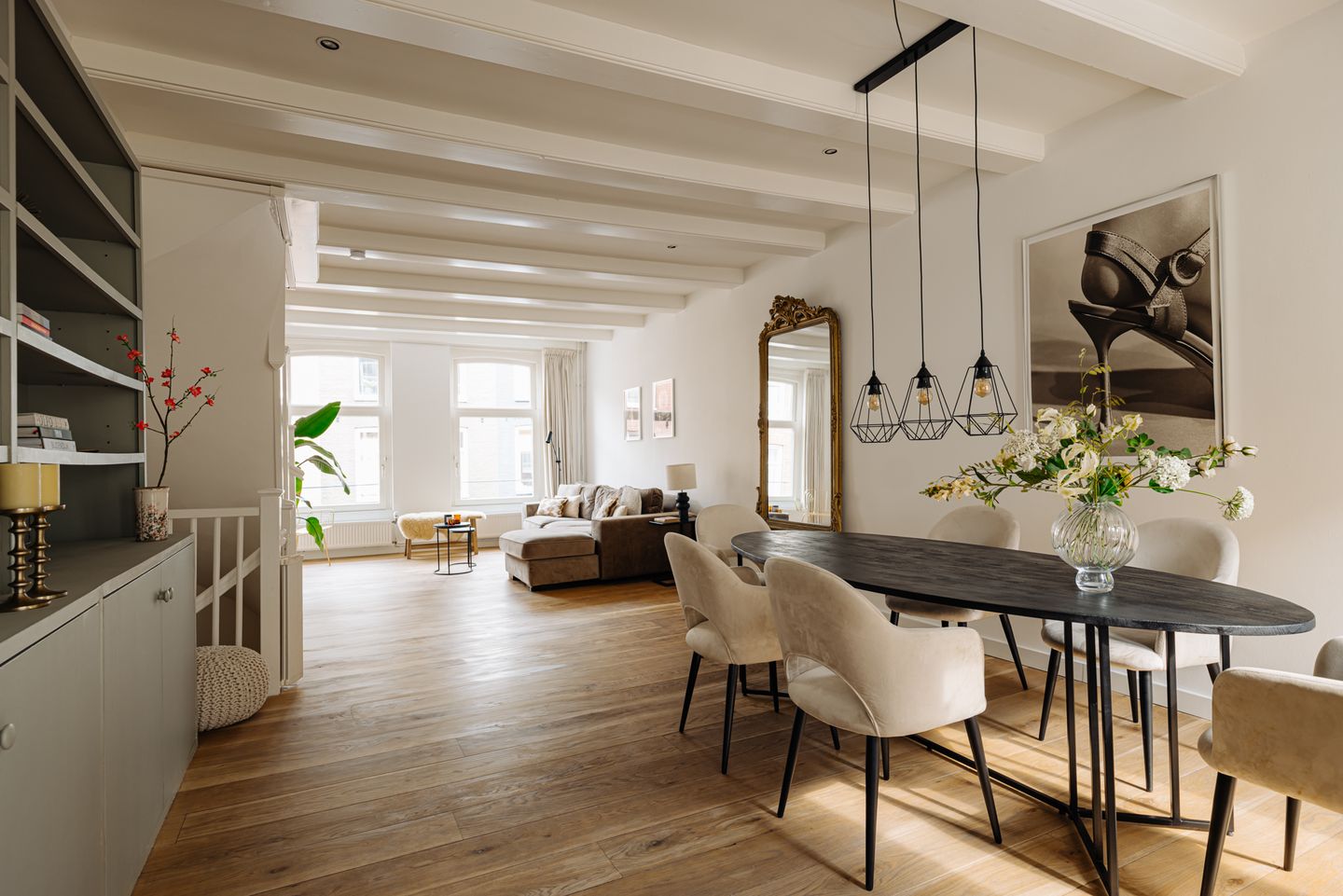 - De tweede verdieping beschikt over een royale doorzonliving met een sfeervol balkenplafond;