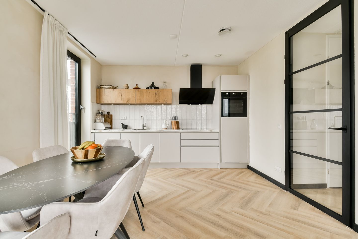 Dit moderne appartement is hoogwaardig afgewerkt en voorzien van een luxe PVC visgraatvloer met vloerverwarming door de gehele woning. De wanden zijn stijlvol afgewerkt met natuurlijke leemverf, wat zorgt voor een warme en rustige uitstraling. De moderne keuken beschikt over een keramisch werkblad en diverse inbouwapparatuur, en de ruime badkamer is uitgerust met een comfortabele regendouche en een toilet met bidetfunctie.