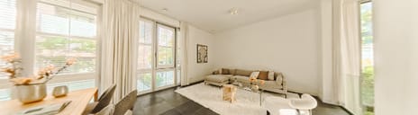 Dit aangename en ruime duplex appartement op de begane grond met dubbele oriëntatie bevindt zich op de hoek van het Miles Building – wat zorgt voor een gevoel van afzondering van de rest van het complex – en doet meer denken aan een privéwoning dan aan een typisch appartement. Het appartement beschikt over een woonoppervlakte van circa 148 m², verdeeld over de begane grond en het souterrain. De ruimtes zijn slim opgebouwd rondom een binnenatrium, waarbij de hoge plafonds en vier meter hoge ramen ervoor zorgen dat ook het souterrain baadt in natuurlijk daglicht. En dankzij de privé-entree op de begane grond geniet je van het comfort van je eigen ingang, zonder afhankelijkheid van een lift, en met directe toegang tot je woning – een zeldzaam voordeel op een plek als de Zuidas!