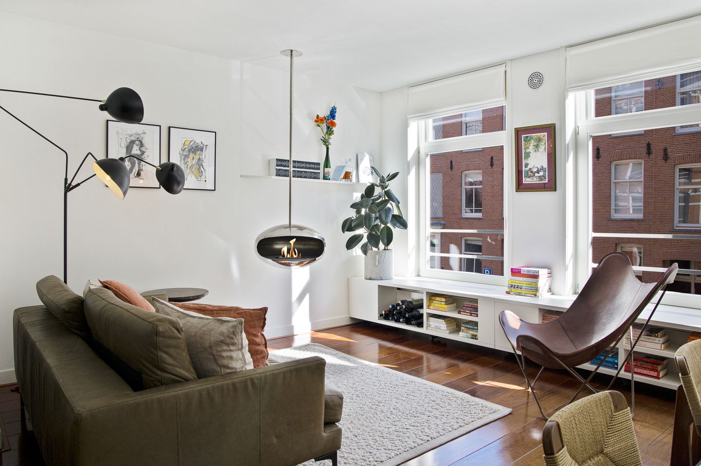 The apartment is located on the first floor and can be reached via a well-maintained communal entrance. Upon entering, you step into the hallway that provides access to all rooms. At the front of the apartment, you’ll find the living room, which is wonderfully bright due to its three large windows. From here, you have a lovely view of the charming Gerard Brandtstraat. In winter, it’s a delight to turn on the modern fireplace and curl up on the sofa with a good book.