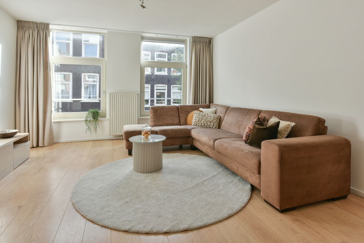 Je komt eerst in de halfopen keuken, die van alle gemakken is voorzien, inclusief een 4-pits gasfornuis, combi-oven / -magnetron, afzuigkap, koel/vriescombinatie en vaatwasmachine. Na de keuken loop je door naar de lichte woonkamer, waar je verrast wordt door de ruimte en de grote ramen die uitkijken op de sfeervolle straat in De Pijp.