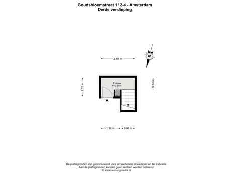 Entree op de derde verdieping met ruimte voor een garderobe. Via de trap bereikt u de keurige vierde verdieping, waar je direct de lichte woonkamer binnenstapt. Het glazen dak van de dakkapel boven de trap laat veel daglicht binnen. Aan de overzijde bevindt zich de keuken, eveneens in een dakkapel geplaatst, met een nette hardstenen werkblad, kraan, combimagnetron en vaatwasser.