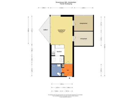 De gebruiksoppervlakte is vastgesteld conform de NEN 2580-norm. Afwijkingen in de maatvoering kunnen voorkomen. Koper is in de gelegenheid gesteld de maten zelf te (laten) controleren. Verschillen geven geen recht op aanpassing van de koopsom of enige andere vorm van compensatie.