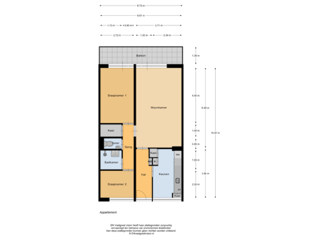 Via the communal staircase, you take the elevator to the fourth floor, after which you reach your apartment via a shared gallery. Upon entering, you come into a hallway that provides access to the meter cupboard, the kitchen, and the rest of the apartment. At the front, there is the first well-sized bedroom, as well as the kitchen, which can still be finished to your own taste. At the rear, you will find the second bedroom and the spacious living room, both of which offer access to the balcony that runs the full width of the apartment and is positioned on the southwest.