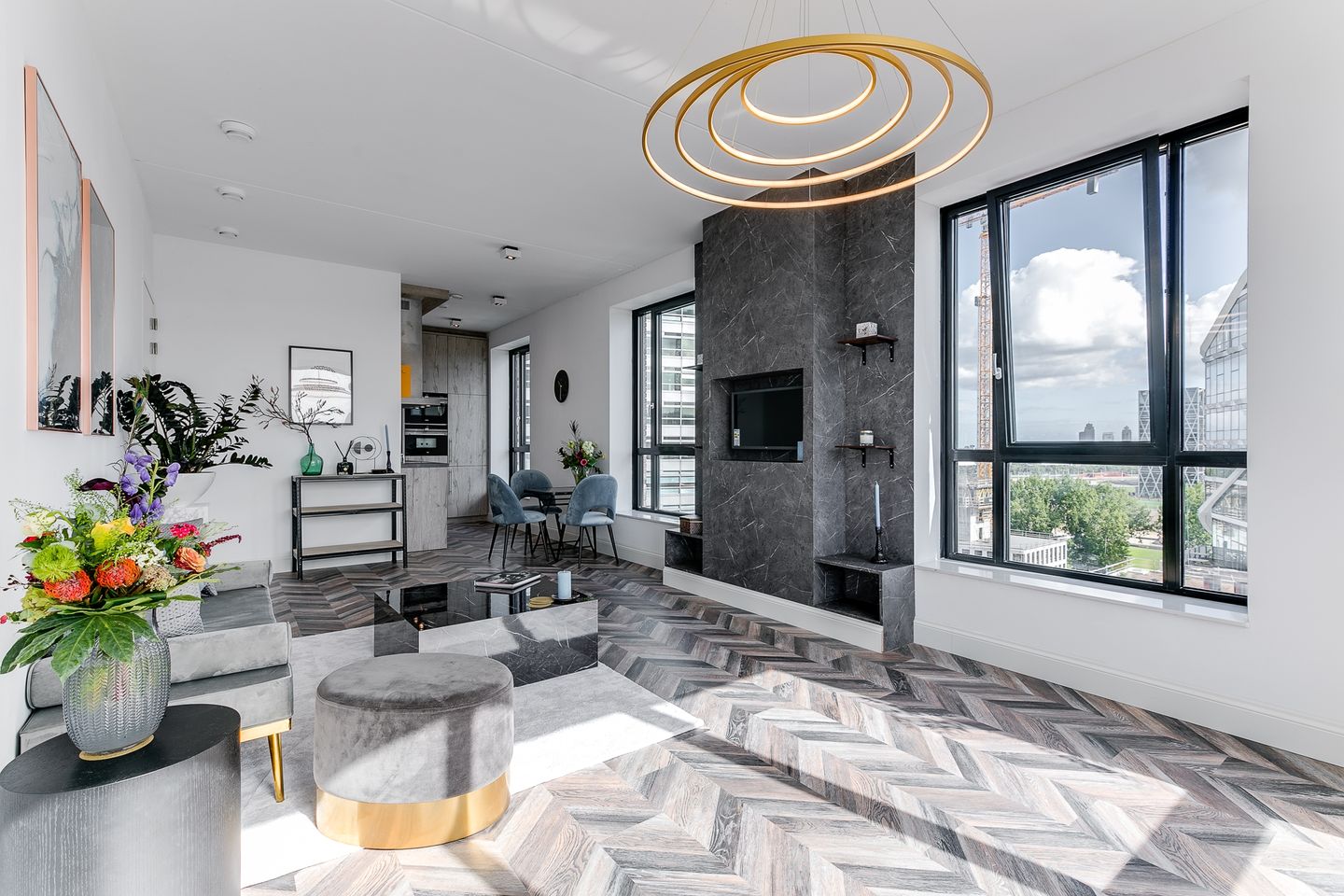 What immediately stands out is the abundance of natural light and the open feel of the apartment. The corner position combined with large windows creates a comfortable living environment where space and privacy are well balanced. The finish is modern and carefully selected, in line with the level this location demands.