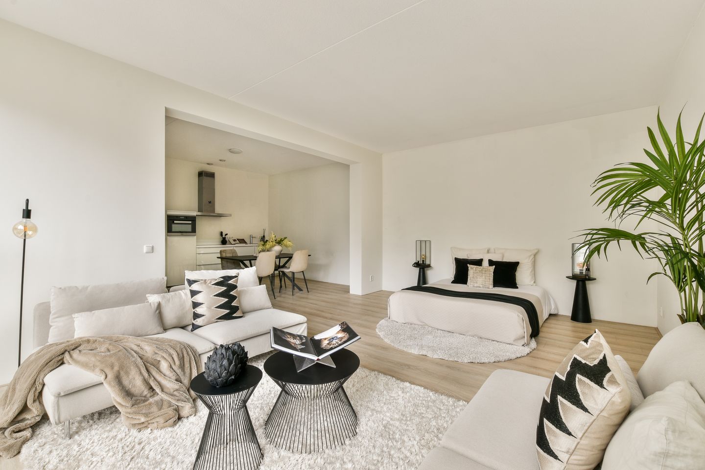 De indeling is slim opgezet waardoor de oppervlakte optimaal te gebruiken is en mogelijkheid biedt tot het realiseren van een slaapkamer. Na de hal waaraan alle vertrekken liggen, nodigt de lichte living met open keuken uit tot om een riante zithoek te plaatsen bij de plafondhoge ramen. De ligging zorgt voor een aangenaam licht in de woonkamer. De rechte keuken vormt een mooie centrale plek in de woonruimte en beschikt over een vaatwasser, inductiekookplaat met afzuigkap, een koelkast en een combioven van Miele. De schuifpui geeft toegang tot de loggia wat ook een verlengstuk van de woonoppervlakte vormt. Er bestaan diverse mogelijkheden om een slaapkamer te creëren zoals in de living door bijvoorbeeld het plaatsen van stalen puien in de ruimte om het loftgevoel te benadrukken, maar toch een afgesloten slaapruimte te laten ontstaan. Het is ook mogelijk in de loggia een slaapruimte te creëren middels het afsluiten van de loggia. Het appartement beschikt over een grote badkamer met een ruime inloopdouche, een toilet en een wastafel met een grote spiegel, een handdoekradiator en wandkast. In de hal is een berging gesitueerd waar ook de wasmachineaansluiting is gemaakt. Alles heeft een moderne luxe met tijdloze charme en belichaamt urban wonen op een fantastische locatie.