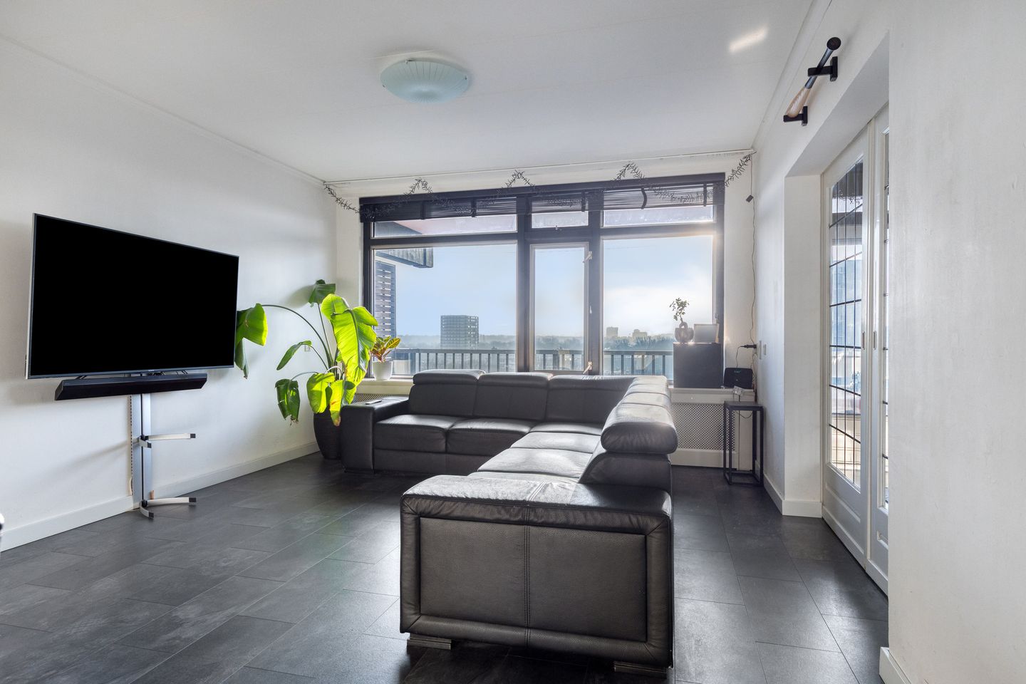 Vanuit de woonkamer loop je makkelijk door naar de extra kamer, die nu dienst doet als thuisfitnessruimte. Deze kamer biedt echter ook de mogelijkheid om een derde slaapkamer te realiseren of in te richten als werk- of hobbyruimte. Via deze kamer heb je directe toegang tot het woningbrede balkon met zijn fijne ligging op het zuidwesten. Hier kun je ongestoord van de zon genieten of even opladen in alle rust terwijl je over de stad of natuur uitkijkt.