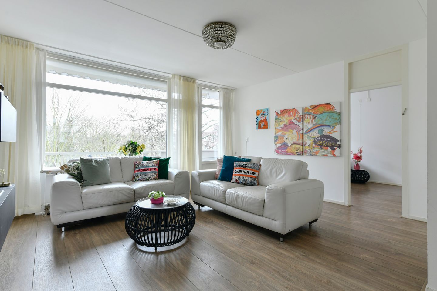 De woonkamer is opvallend licht dankzij de grote raampartijen, wat direct zorgt voor een prettige en open sfeer. Het appartement beschikt over een royale woonkamer met open keuken, een slaapkamer van goed formaat, een moderne badkamer en een separaat toilet. Daarnaast is het heel eenvoudig om hier een extra slaapkamer te realiseren.