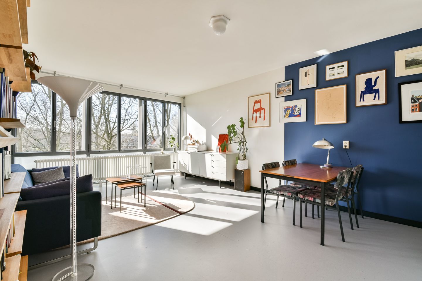 The apartment is located in the quiet and family-friendly neighborhood Het Breed in Buikslotermeer, a green and spacious residential area. The neighborhood is also known as Plan Van Gool, named after architect Frans van Gool. In 2024 it was designated as a municipal protected cityscape due to its innovative urban design and futuristic architecture. The residential blocks are connected by elevated walkways, which together with the internal galleries on the third floor create an additional route through the neighborhood, the so-called “streets in the sky”.