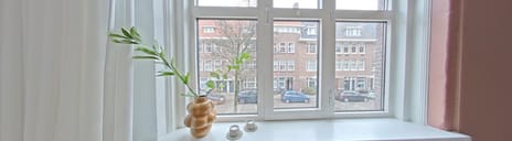You reach the apartment on the first floor via the common, neat staircase. At the front of the building is the attractive, bright living room. The (bed) room of approximately 6m² next to the living room is easy to add to the living room, so that an extra spacious living room can be created. At the rear is the neat kitchen from 2018 with freestanding appliances such as a refrigerator with freezer compartment, combination microwave, stove with 4 gas burners and the connection for a freestanding washing machine and dishwasher. From the kitchen you can enter the lovely, sunny balcony of 8m². The spacious bedroom is located next to the balcony and the quiet courtyard. The modern bathroom (from 2022) is situated in the middle of the apartment and is equipped with a toilet, sink and walk-in shower. The entire apartment has a parquet floor.