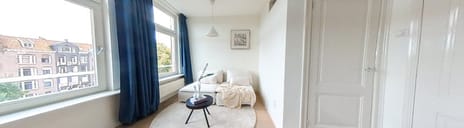 Ruim en licht dubbel bovenhuis met drie slaapkamers, energielabel A en de mogelijkheid tot een dakterras. Gelegen aan de charmante Hugo de Grootkade, waar de Hugo de Grootgracht en de Da Costagracht samenkomen, geniet je hier van een wijds uitzicht over het water en de historische grachtenpanden – een zeldzame combinatie in Amsterdam. De woning beslaat twee verdiepingen met hoge plafonds, sierlijke ornamenten en originele schouwen. Grote raampartijen aan de voorzijde zorgen voor veel licht en uitzicht over de gracht. Dankzij HR++-beglazing, moderne isolatie en ligging op eigen grond woon je hier energiezuinig met behoud van karakter. Het dak is mee gesplitst, en er is in het verleden een vergunning verleend voor een dakterras (nu verlopen, maar opnieuw aan te vragen).