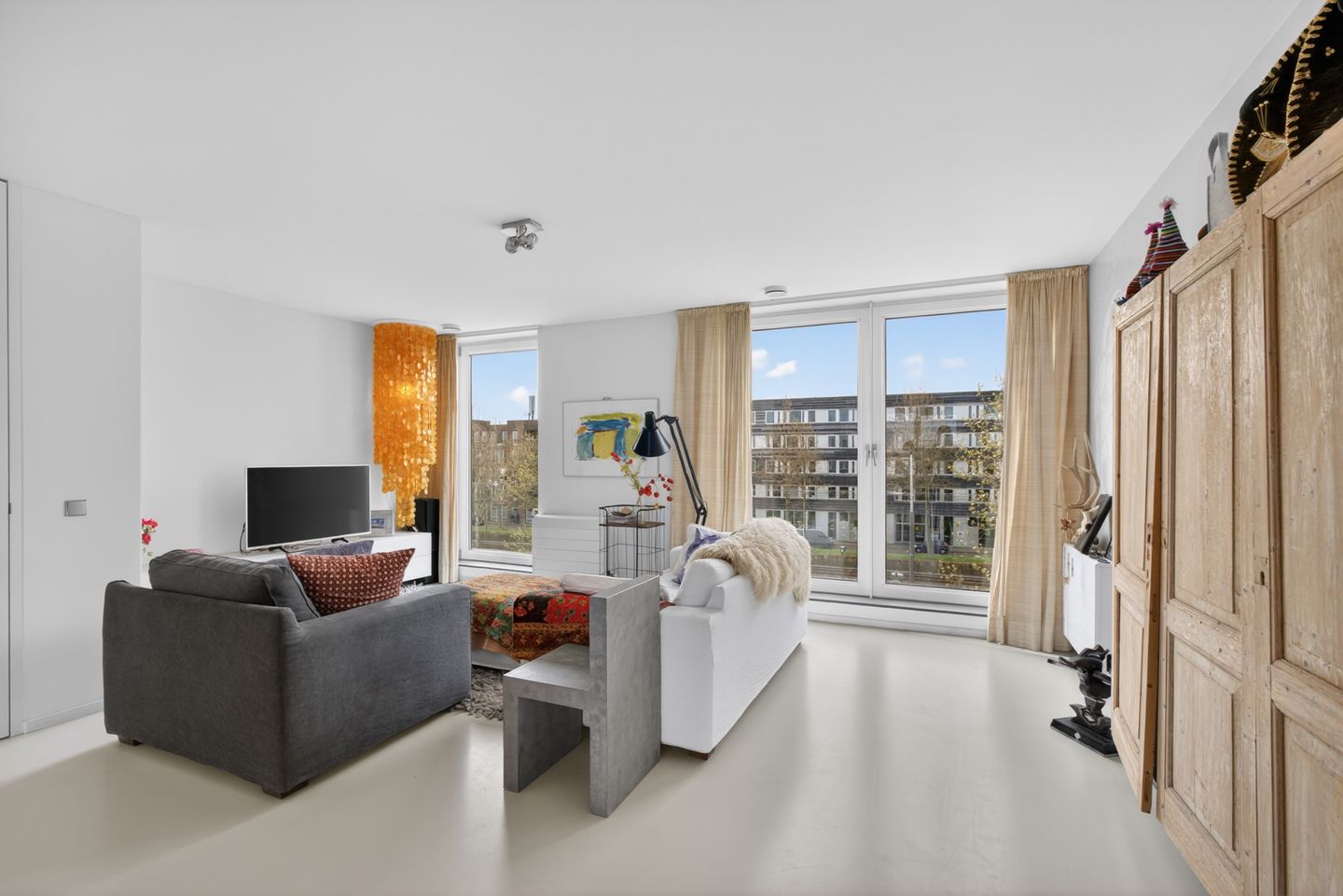 A holiday feeling in your own home! From this spacious and bright 2/3-room apartment of approximately 77 m², featuring a generous balcony (approx. 15 m²), you can enjoy stunning views of the Amsterdam houseboats, passing boats, and the lively waters of Waterbuurt West every day. The apartment is located on the third floor of the distinctive Kadegebouw on Steigereiland in IJburg.