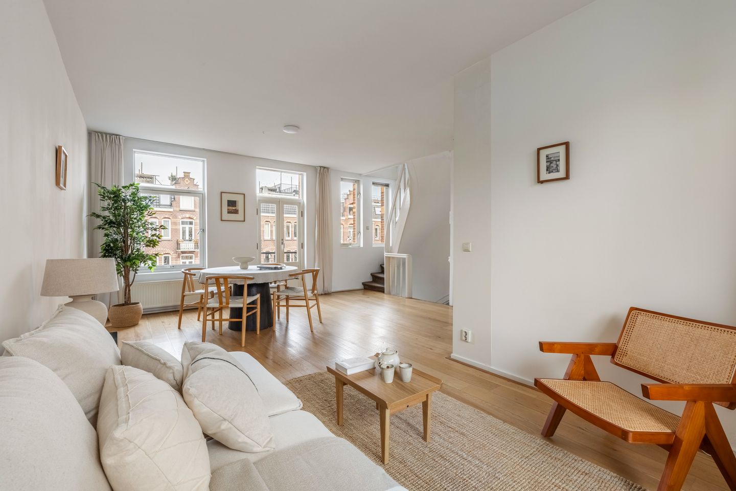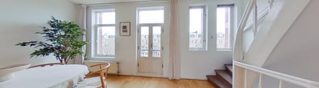 Located on a lively and popular street in the Indische Buurt, this bright and surprisingly spacious double upper-level apartment is spread over the third and fourth floors and has its own private entrance on the second floor. The property combines character and comfort, offering a well-balanced layout with multiple outdoor spaces. Large windows, exposed wooden beams, and a pleasant through-living design create an open and inviting atmosphere. With a generous living floor, a flexible sleeping floor and a spacious roof terrace, this is a home that easily adapts to different living needs. In addition, the apartment is situated on freehold land.