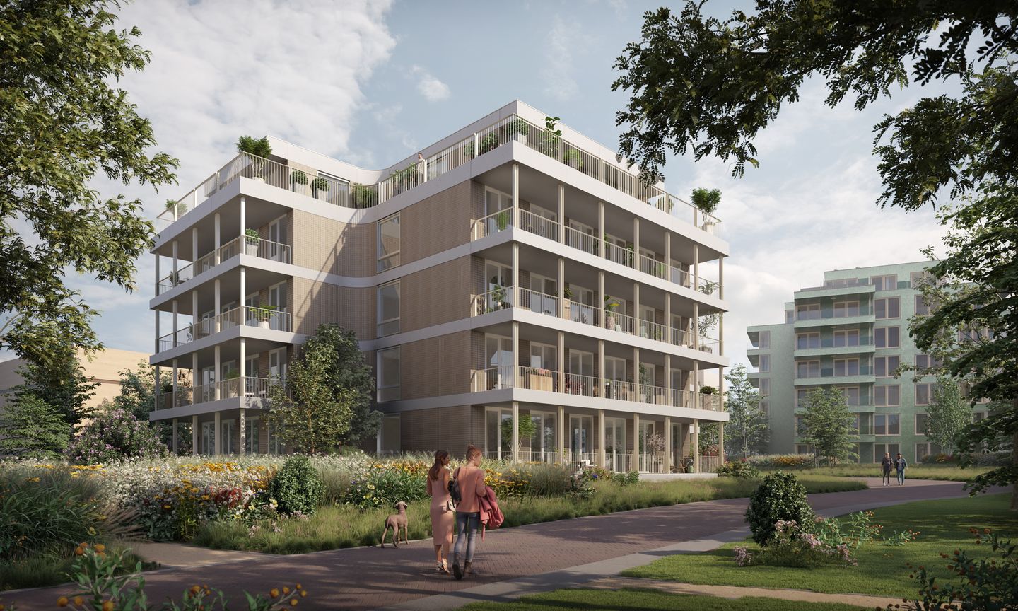 In the immediate vicinity you will also find the shopping area of Buikslotermeerplein, the ferries to the city centre, and the connection to the A10. Within a few minutes by bike you stand in the open landscape of Landelijk Noord. Along the Noordhollandsch Kanaal, a new city park is currently being developed — a green boulevard for walking, exercising, and relaxing by the water. The neighbourhood itself is entirely car-free, ensuring peace, safety, and an abundance of greenery. The building includes a spacious communal bicycle storage.