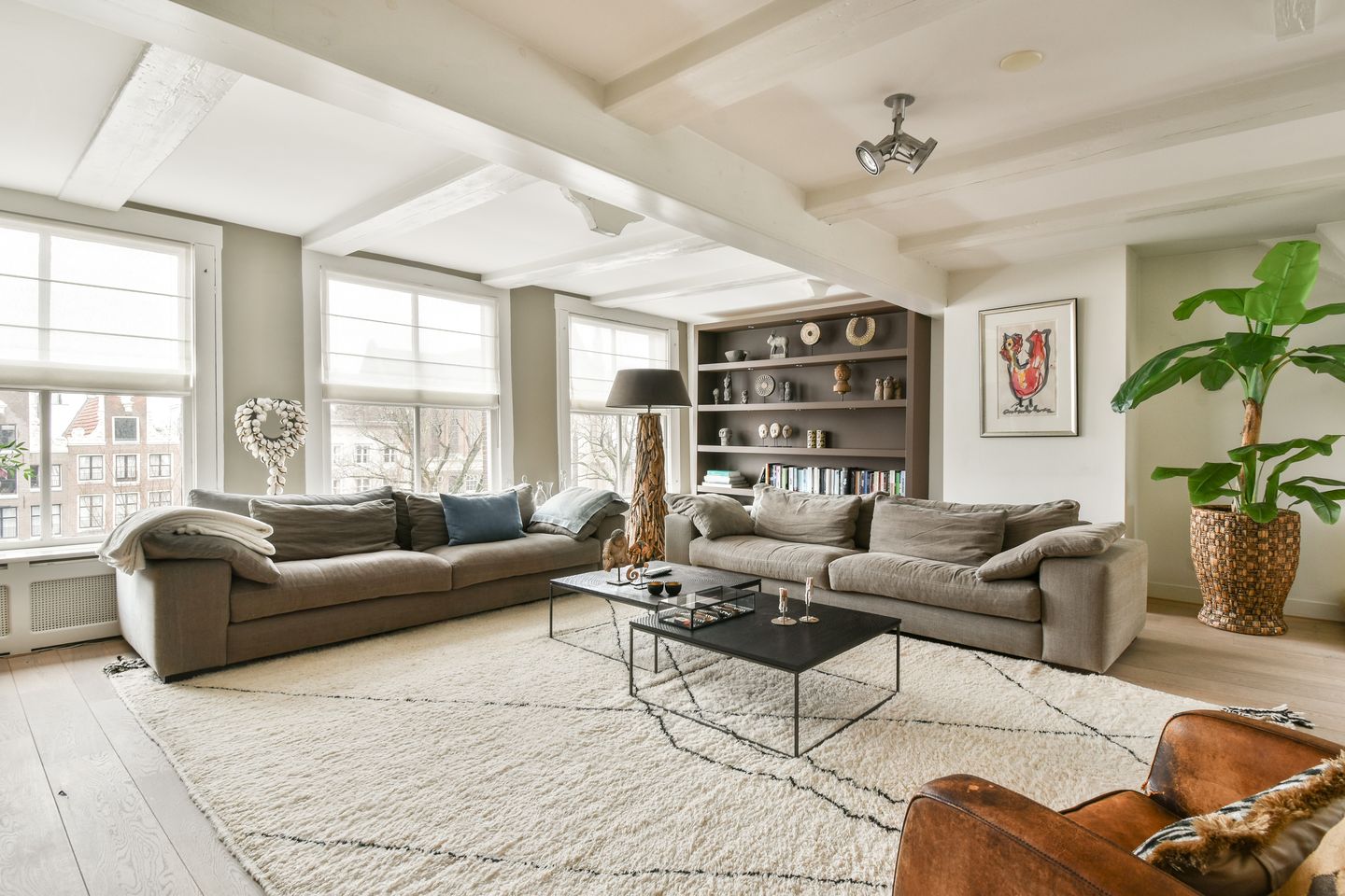 Located in one of Amsterdam’s most beautiful areas, near the popular ‘Negen Straatjes’, you’ll find this charming and bright 2-bedroom apartment. It occupies the top two floors of a wide canal house on the Keizersgracht, featuring an impressive facade over six meters wide, with three windows overlooking the canal. The position within the building provides a great sense of privacy and exceptional natural light thanks to windows at the front, back, and side.