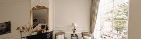This characteristic apartment of 106 m² (including mezzanine) is located on the bel-etage of a listed canal house (Rijksmonument) on the Keizersgracht. The property features one spacious bedroom (with the possibility of creating a second bedroom) with an en-suite bathroom, a generous living room with high ornamental ceilings, luxurious finishes, and a stunning view over the canal. Situated in a unique location at the bend of the canal belt at the intersection with the Leidsegracht, between the Spiegelkwartier and the Nine Streets.