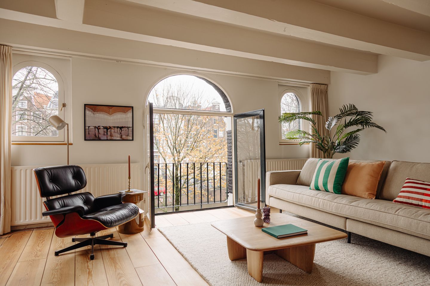 't SCHEEPJE | Apartment, located on the Keizersgracht, with an elongated and well-organised residential layout. The residence features a living with open kitchen, two bedrooms, one bathroom, and a roof terrace at the rear, available for use in consultation with the neighbours. Its position along the canal provides a direct connection to the water and the urban rhythm of the surroundings.