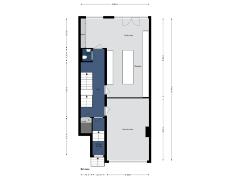 - 59 m² (8,50 meter diep en 6,95 meter breed)