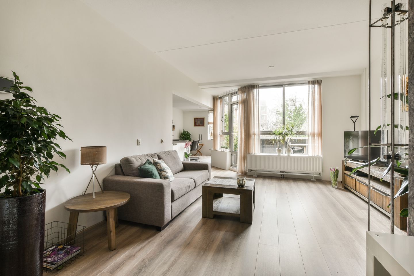 De woonkamer heeft een vernieuwde open keuken en is heerlijk ruim. Vanuit de woonkamer heeft u toegang tot het zonnige terras van maar liefst 8.4m2! De nieuwe keuken is geplaatst in 2021 en voorzien van een inductie kookplaat met een geïntrigeerd afzuiginstallatie, een wijn klimaatkast met twee zones en ruimte 36 flessen, vaatwasser, koel/vries combinatie, oven met stoomfunctie en een keukenblad van composiet.