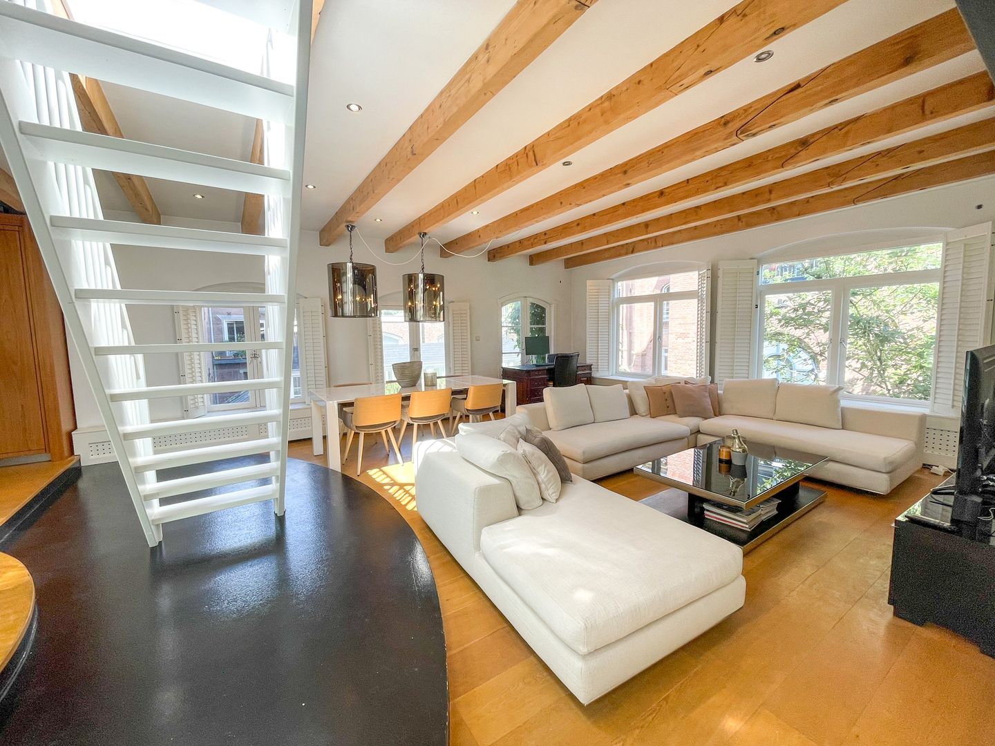 Uniek, licht en stijlvol loft appartement van ca. 134 m² met hoge plafonds en een zonnig privé-dakterras van ca. 21 m² aan de Lijnbaansgracht, in het hart van Amsterdam.