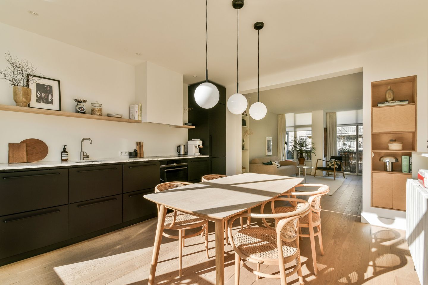 Bij binnenkomst op de eerste verdieping via een elegant trappenhuis, leidt de hal je naar een lichte en ruime woonkamer en aangrenzende open woonkeuken. Deze is onder andere voorzien van een echt marmeren aanrechtblad met een verzonken inductieplaat. Modern en functioneel, perfect voor het bereiden van heerlijke maaltijden.De open woonkeuken is ruim en licht, met een grote pui en Frans balkon aan de voorzijde.