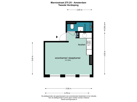 Op een toplocatie aan de rand van de Jordaan bevindt zich deze studio van 23 m², gelegen op de tweede verdieping aan de voorzijde van het pand aan de Marnixstraat. Daarnaast beschikt de woning over een ruime berging van circa 12 m² op de vierde verdieping. De studio is voorzien van een open keuken met de nodige inbouwapparatuur, een praktische woon-/slaapkamer en een complete badkamer.