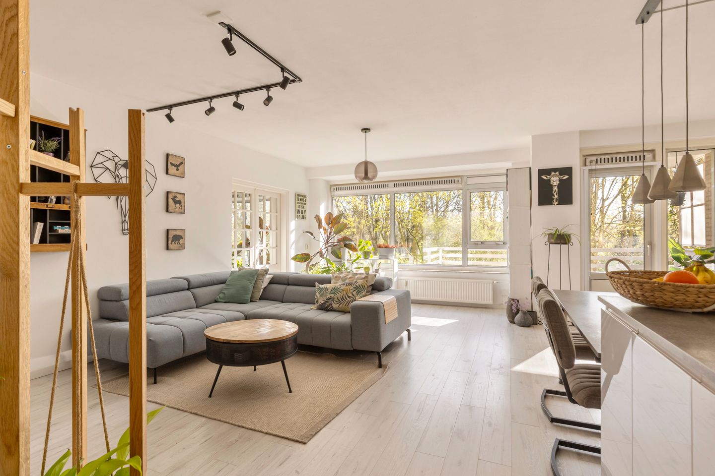 De royale woonkamer vormt het hart van de woning en biedt een ideale leefruimte voor zowel ontspanning als sociaal samenzijn. Dankzij de grote raampartijen en het vrije uitzicht over het park is de ruimte bijzonder licht en voelt deze extra ruim aan. Er is meer dan voldoende plek voor een comfortabele zithoek én een grote eettafel – perfect voor diners met vrienden of een gezellige avond thuis. De open indeling sluit naadloos aan op de keuken, wat zorgt voor een moderne en toegankelijke leefomgeving die perfect past bij de levensstijl van expats en jonge stellen. In 2024 is het gehele appartement voorzien van een nieuwe laminaatvloer, wat bijdraagt aan een frisse en verzorgde uitstraling.