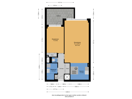 Deze woning is gemeten volgens de Meetinstructie. De Meetinstructie is gebaseerd op de NEN2580. De Meetinstructie is bedoeld om een meer eenduidige manier van meten toe te passen voor het geven van een indicatie van de gebruiksoppervlakte. De Meetinstructie sluit verschillen in meetuitkomsten niet volledig uit, door bijvoorbeeld interpretatieverschillen, afrondingen of beperkingen bij het uitvoeren van de meting. Hoewel wij de woning met veel zorg hebben opgemeten kan het zijn dat er verschillen zijn in de afmetingen. Noch verkoper noch de makelaar accepteert enige aansprakelijkheid voor deze verschillen. De maatvoeringen worden door ons gezien als zuiver indicatief. Indien de exacte maatvoering voor jou van belang is, raden wij jou aan de maten zelf te (laten) meten.