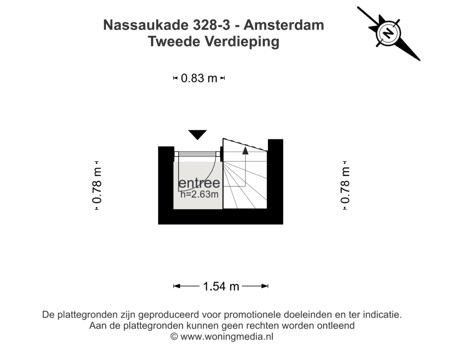 Via het gemeenschappelijke trappenhuis komt men bij de entree op de tweede verdieping. Via de compacte overloop met garderobe leidt de interne trap naar de woonverdieping op de derde etage.