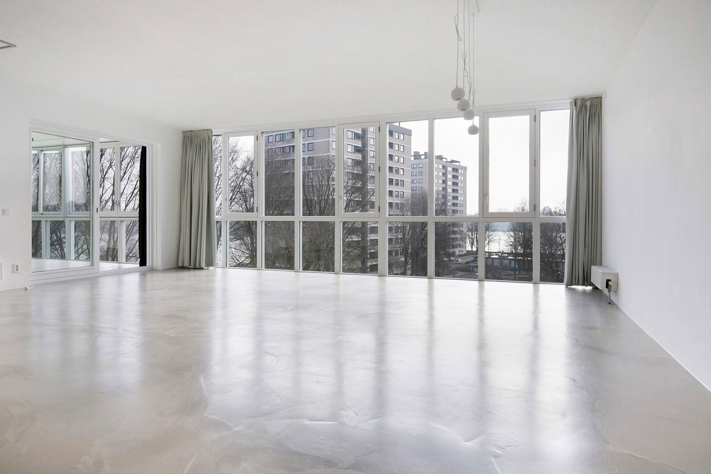The living room is undoubtedly the heart of the home: exceptionally spacious, filled with natural light, and featuring floor-to-ceiling windows across the entire width of the apartment. From here, you can enjoy panoramic views over the Sloterplas every single day.