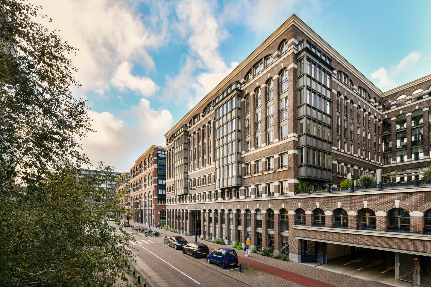 The complex consists of two blocks with two roof gardens in between. The facade continues on the water side, making it appear as one whole. Each block consists of seven floors surrounding a beautiful atrium from which up to eight apartments on each floor can be reached via two elevators. The building accommodates 108 apartments and 4 commercial spaces at street level.