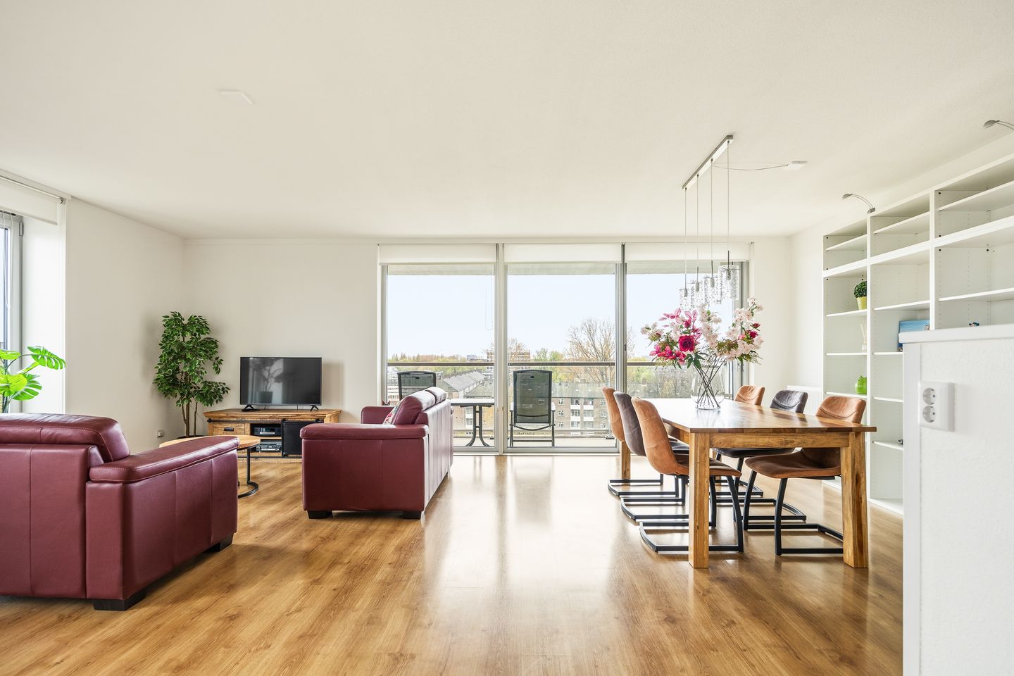 De ruimte woonkamer is heerlijk licht dankzij de grote raampartijen en biedt volop ruimte voor een comfortabel zit- en eetgedeelte. Vanuit de woonkamer is er direct toegang tot het ruime terras van ca. 15m², gelegen op het zonnige zuiden.