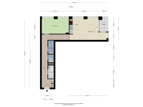 Binnenkomst in de hal met meterkast. De woonkamer ligt aan de achterzijde van het appartement. Door de plafondhoge raampartijen is er veel lichtinval. Toegang tot het balkon met uitzicht op het Osdorpplein. Het balkon is overdekt, waardoor je hier heerlijk kunt zitten en genieten van een hapje en een drankje.