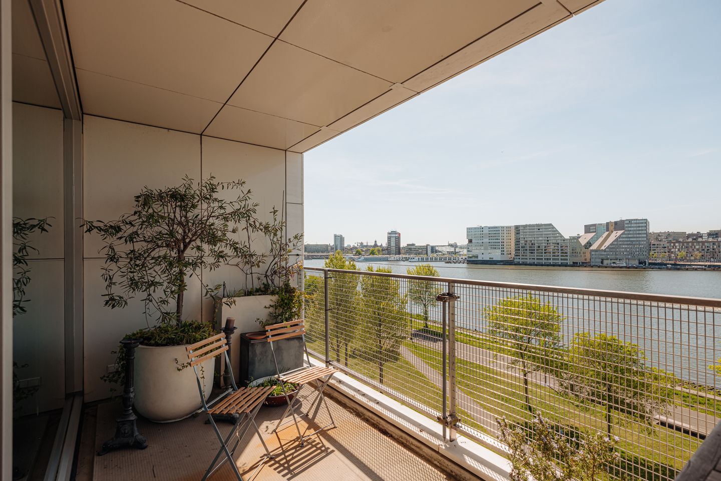The Panorama of Overhoeks - Natural tranquillity and panoramic views converge in this tastefully composed 98 m² apartment. Situated within the distinctive residential building De Europa, along the banks of the IJ, this residence occupies the fourth floor and is accessible by lift. A luminous and open layout, a generous southwest-facing balcony of 10 m², and sweeping views across skyline and water define the essence of this living experience. A serene retreat mere moments from the city centre — where space, rhythm and calm set the tone.